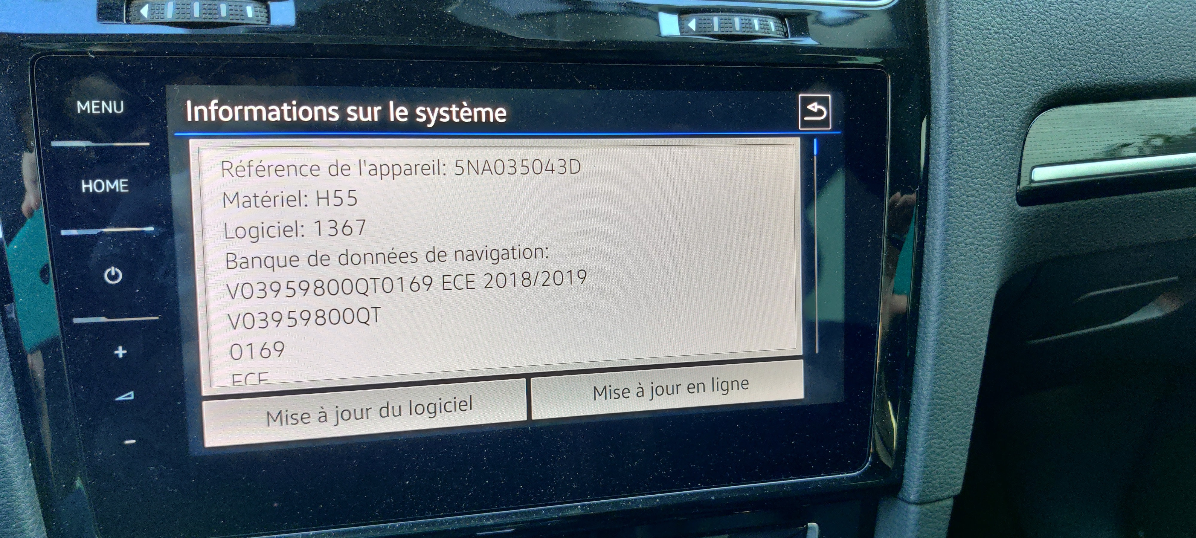 Peut-être avez vous une page équivalente à celle du Discover de la Golf7 qui permets de voir les versions firmware et les versions des cartes ?